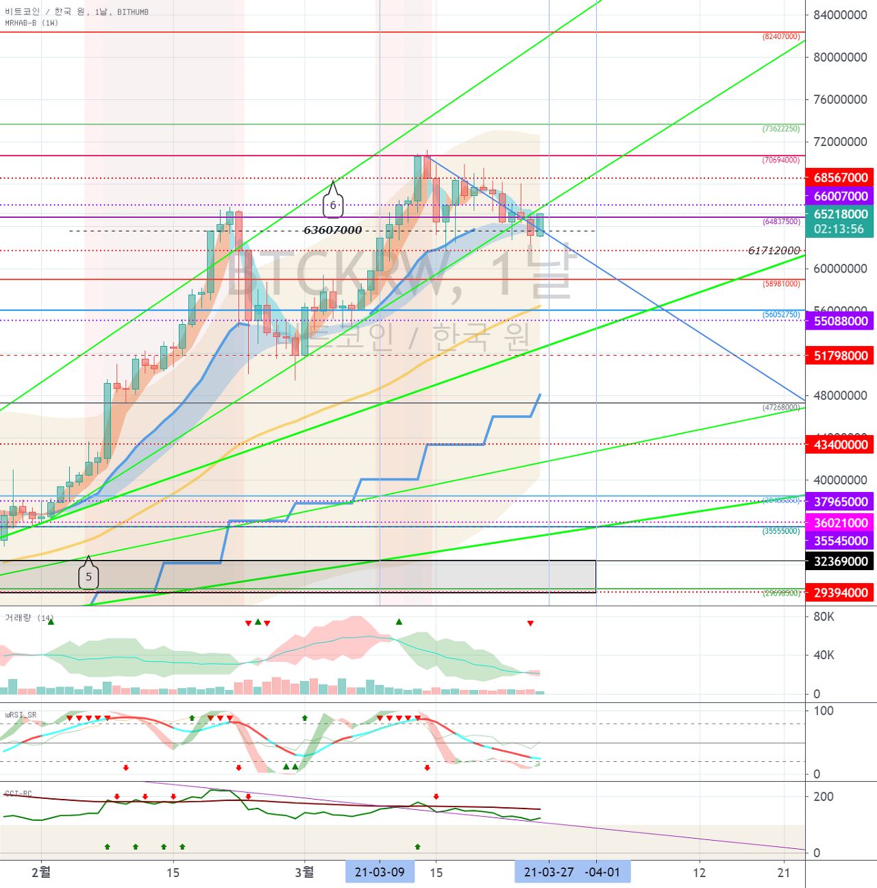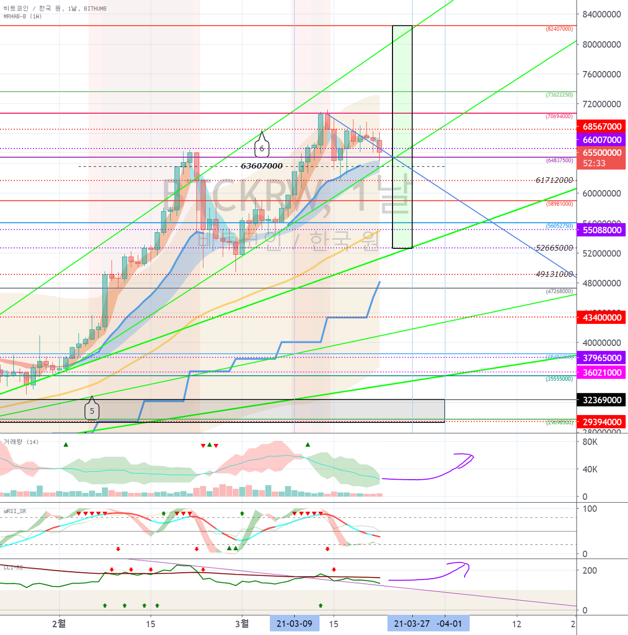하락한다면, 61712000 -64837000 구간에서 지지를 받는지 지켜봐야 합니다.