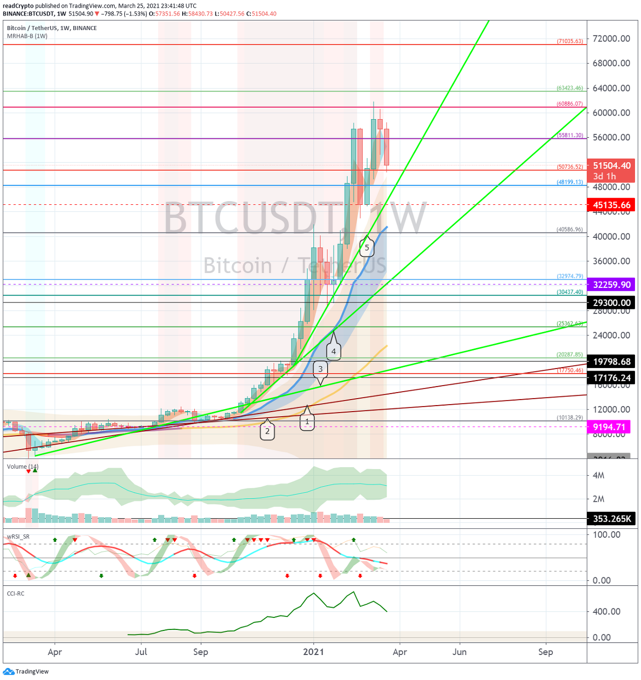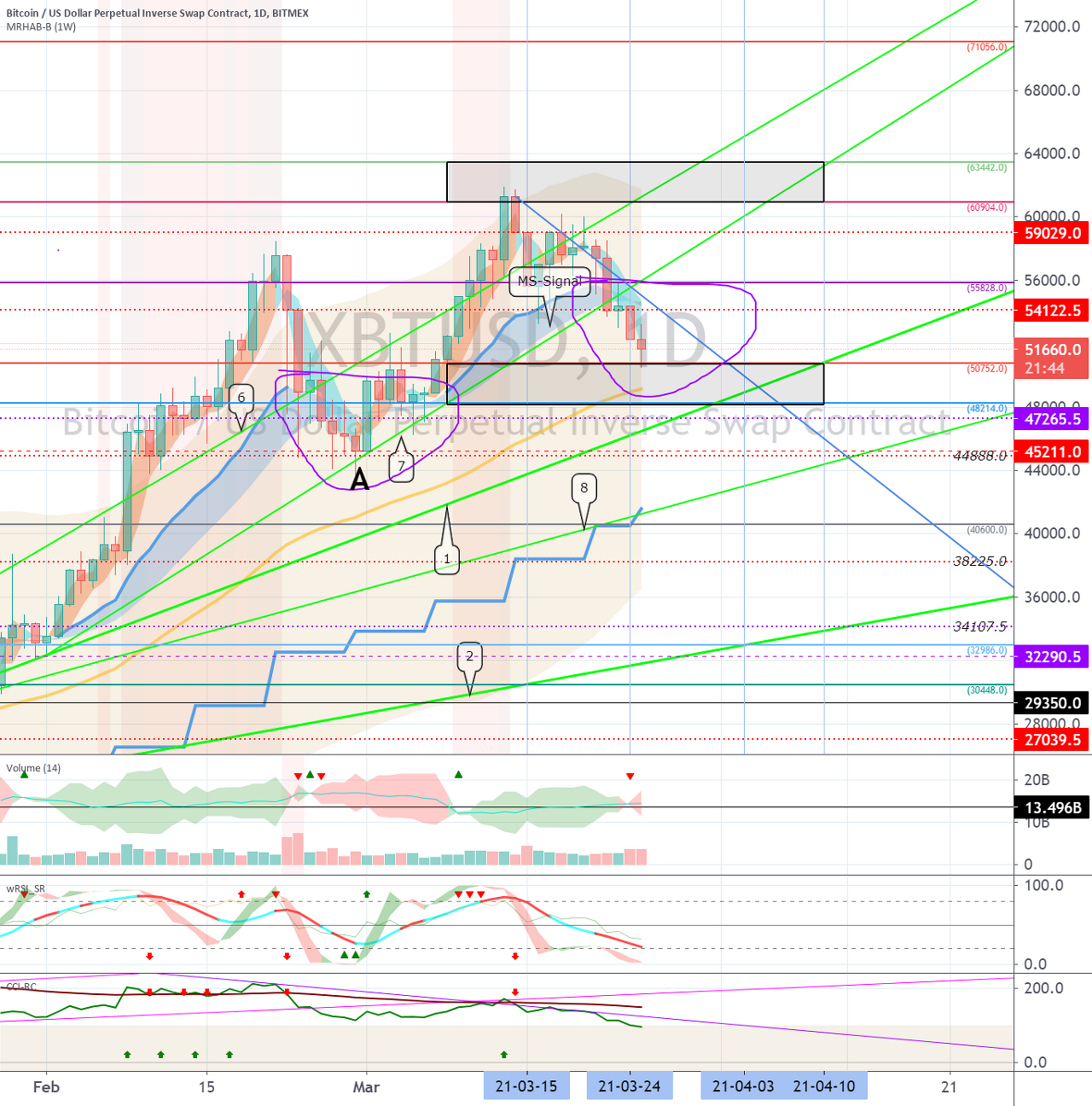 이번 변동성 기간은 BTCUSDT 차트 (48199.13-50736.52 구간과 60886.07-63423.46 구간)과 XBTUSD 차트 (48214.0-50752.0 구간과 60904.0-63442.0 구간) 에서 벗어나면서 종료될 것으로 예상됩니다.