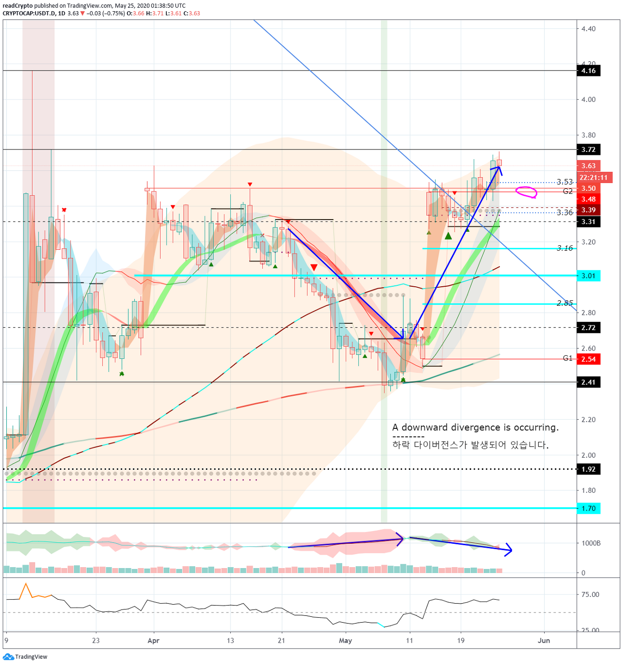 ** 지지나 저항은 1D 차트의 종가 기준 입니다.