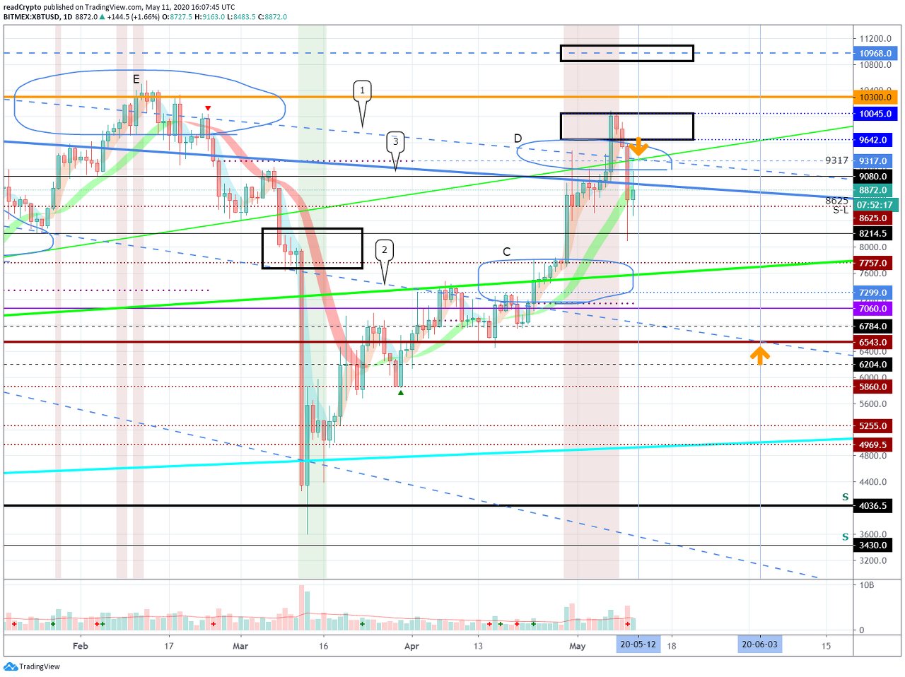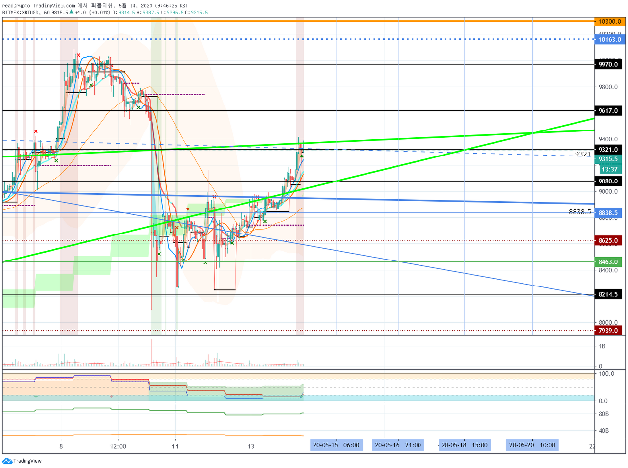 비트코인 (BTC) - 5월 17일 (9481 지점에서 지지 받을 수 있을까) by readCrypto on TradingView.com