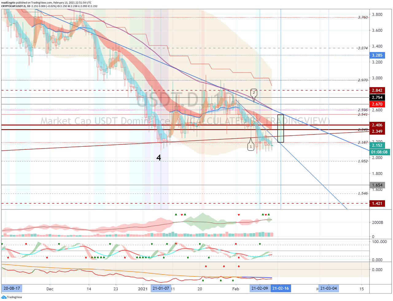 2월 14일-18일 사이에 2.187-2.541 구간으로 상승하는지 지켜봐야 합니다.