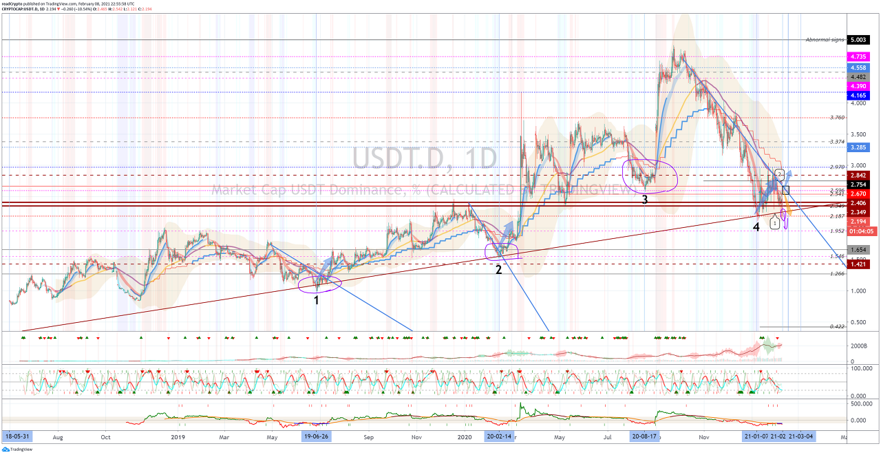 상승 추세선 (1) 이하에서 USDT 도미넌스를 유지할 수 있다면, 코인 시장은 상승 추세를 유지할 것으로 예상됩니다.