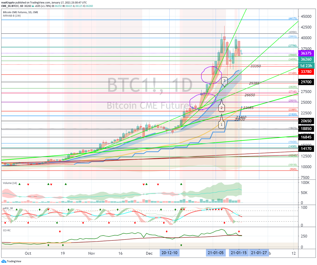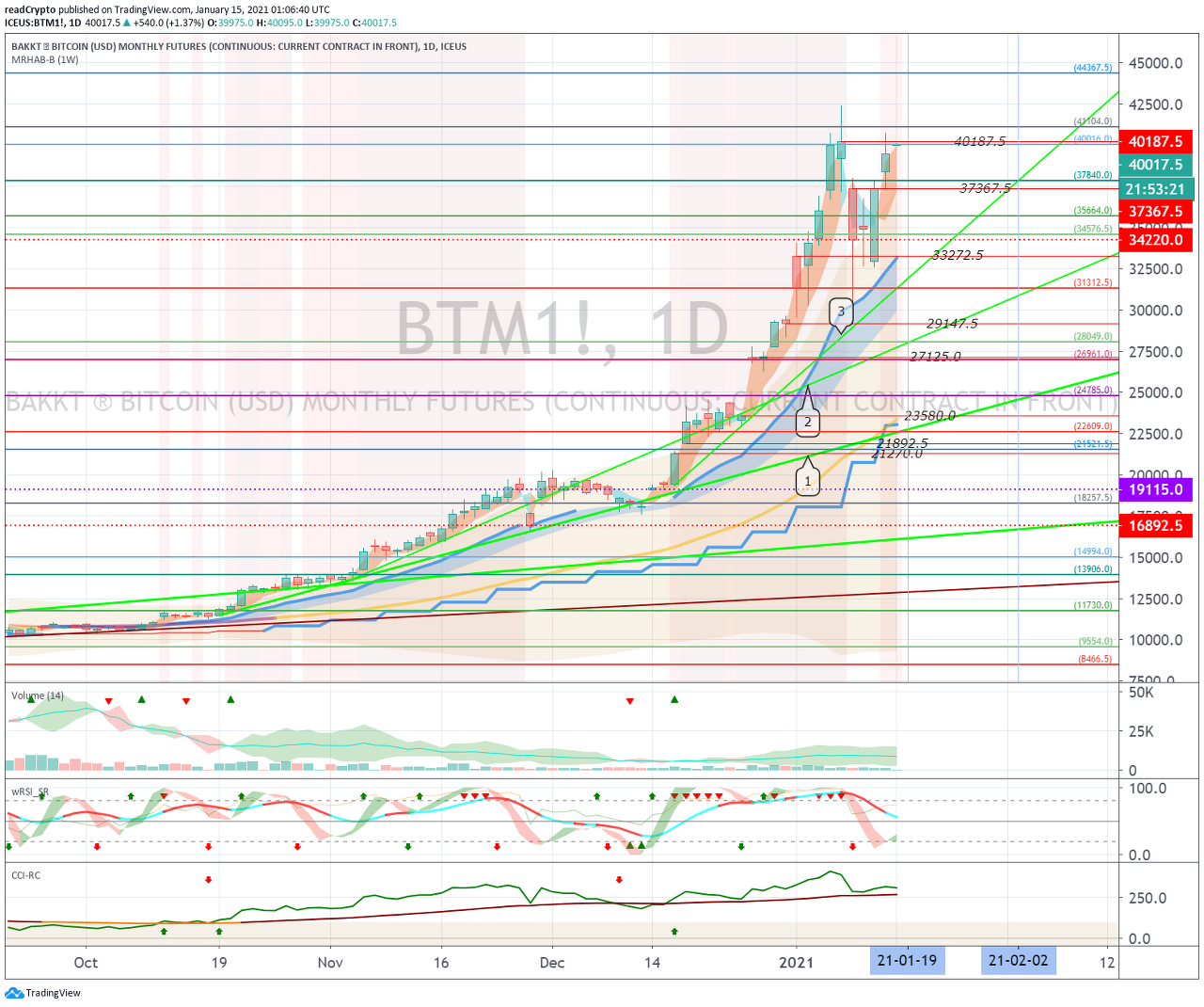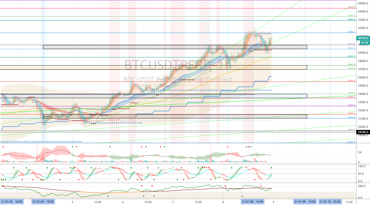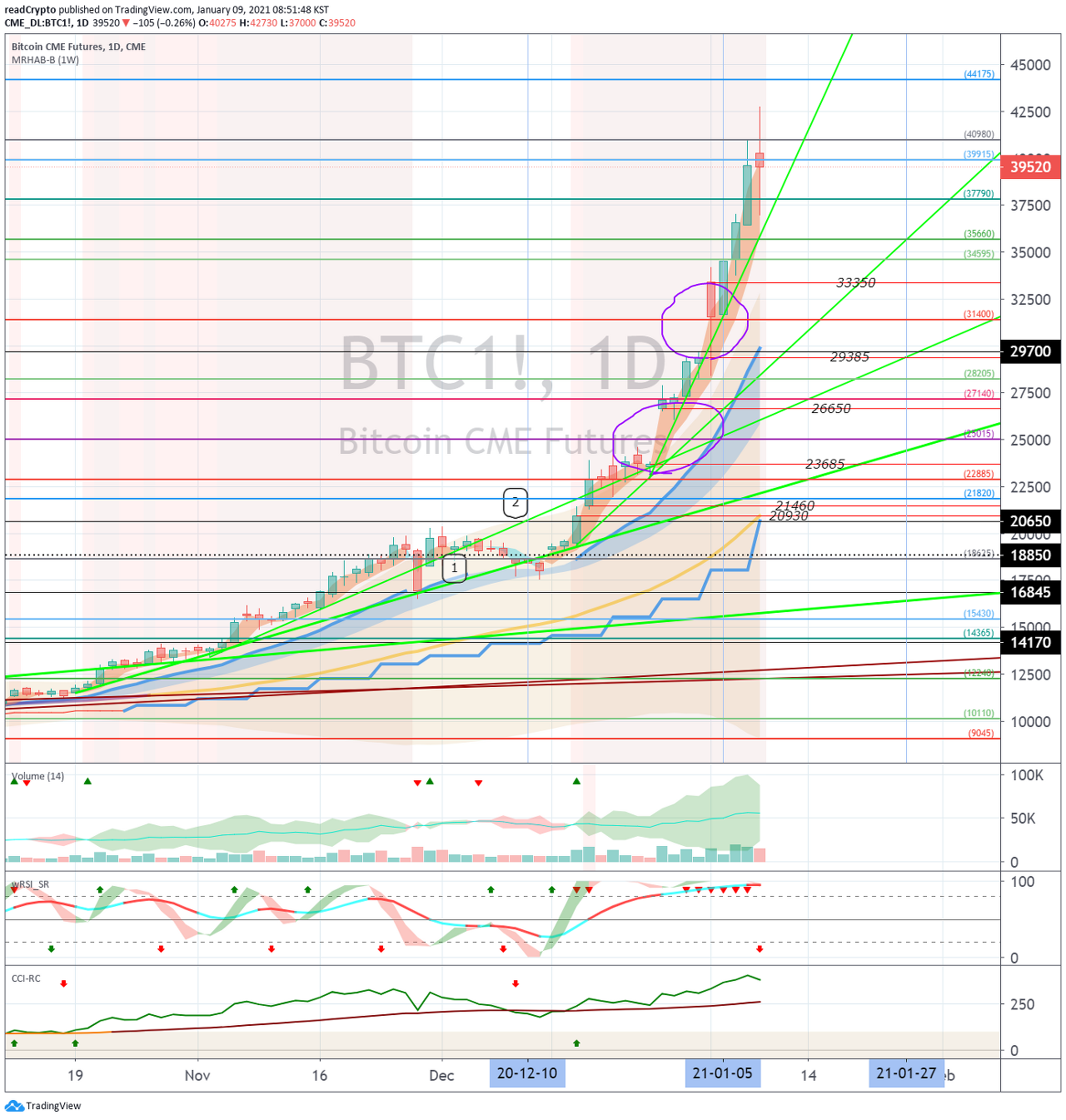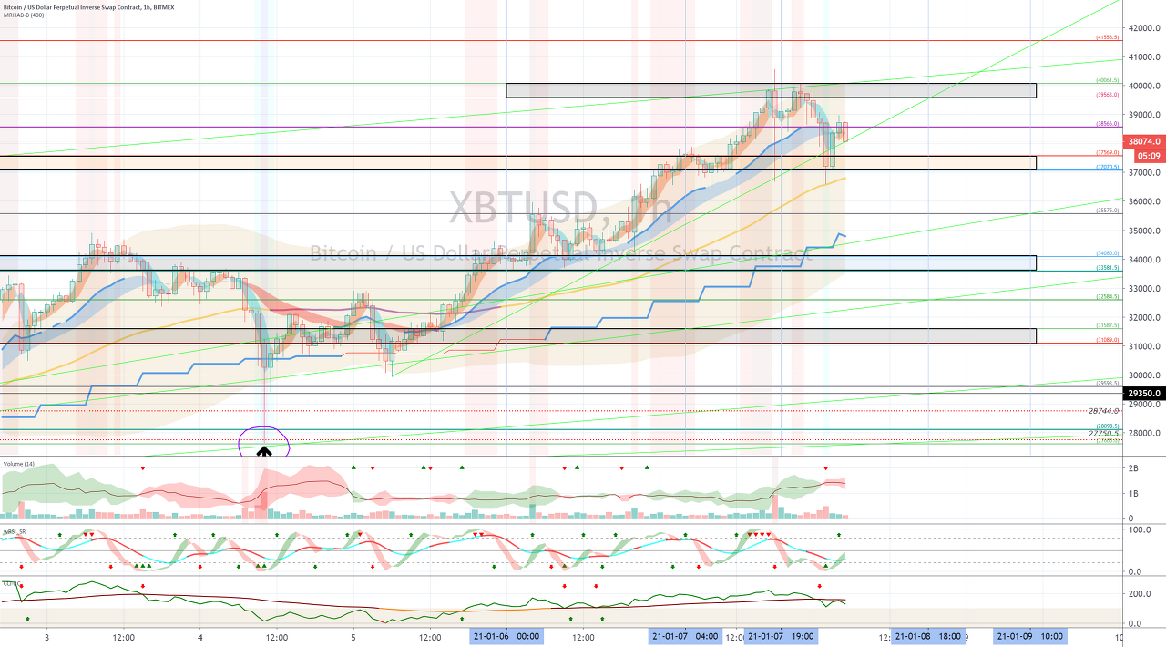 1월 15일경-20일경의 변동성으로 35964.5-40340.0 구간에서 벗어나는 움직임이 나오는지 지켜봐야 합니다.