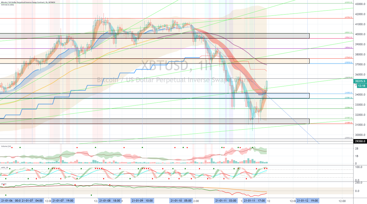 34871.0-35964.5 구간을 발판 삼아 상승이 나올 수 있는지 지켜봐야 합니다.
