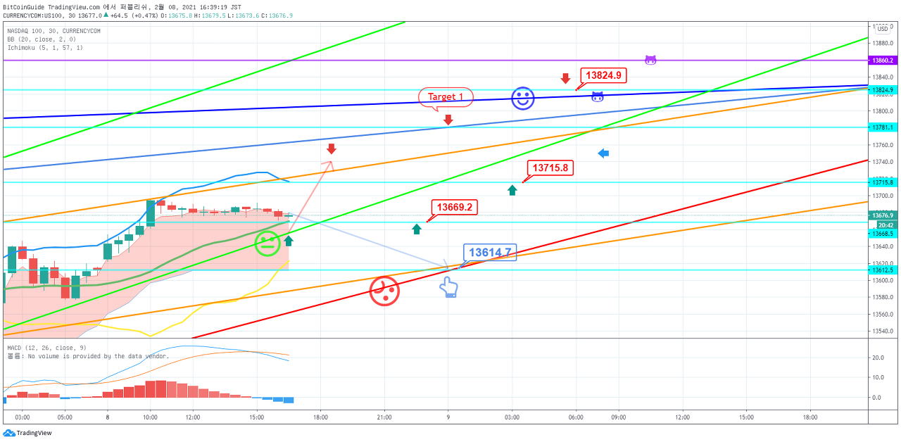 (LONG) 1. 진입 지점 : 43722.0 지점을 상향 돌파시 목표 지점 : 1차 45151.1 지점 이상, 2차 46580.1 지점 이상 Stop Loss : 43007.4 지점