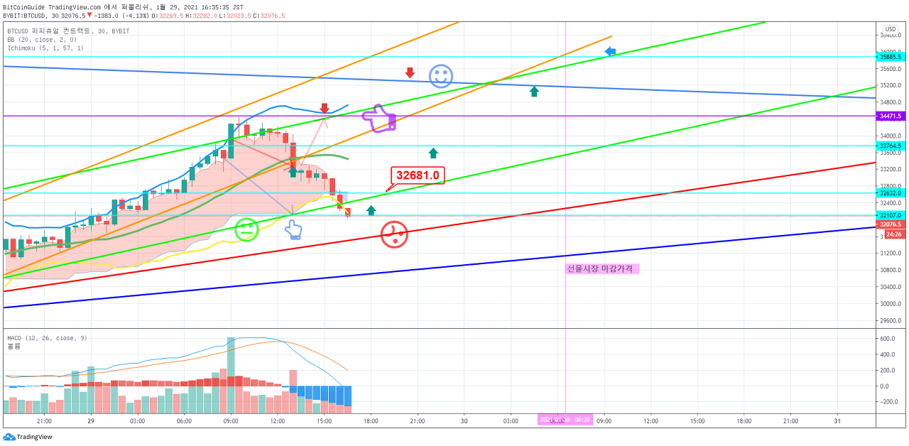 지금 움직임은 이미 숏이나 롱 진입하신분들이 아니라면 딱히 롱이나 숏 진입자리가 나오지않았고 계속 아래로 흐르고있는 움직임이구요