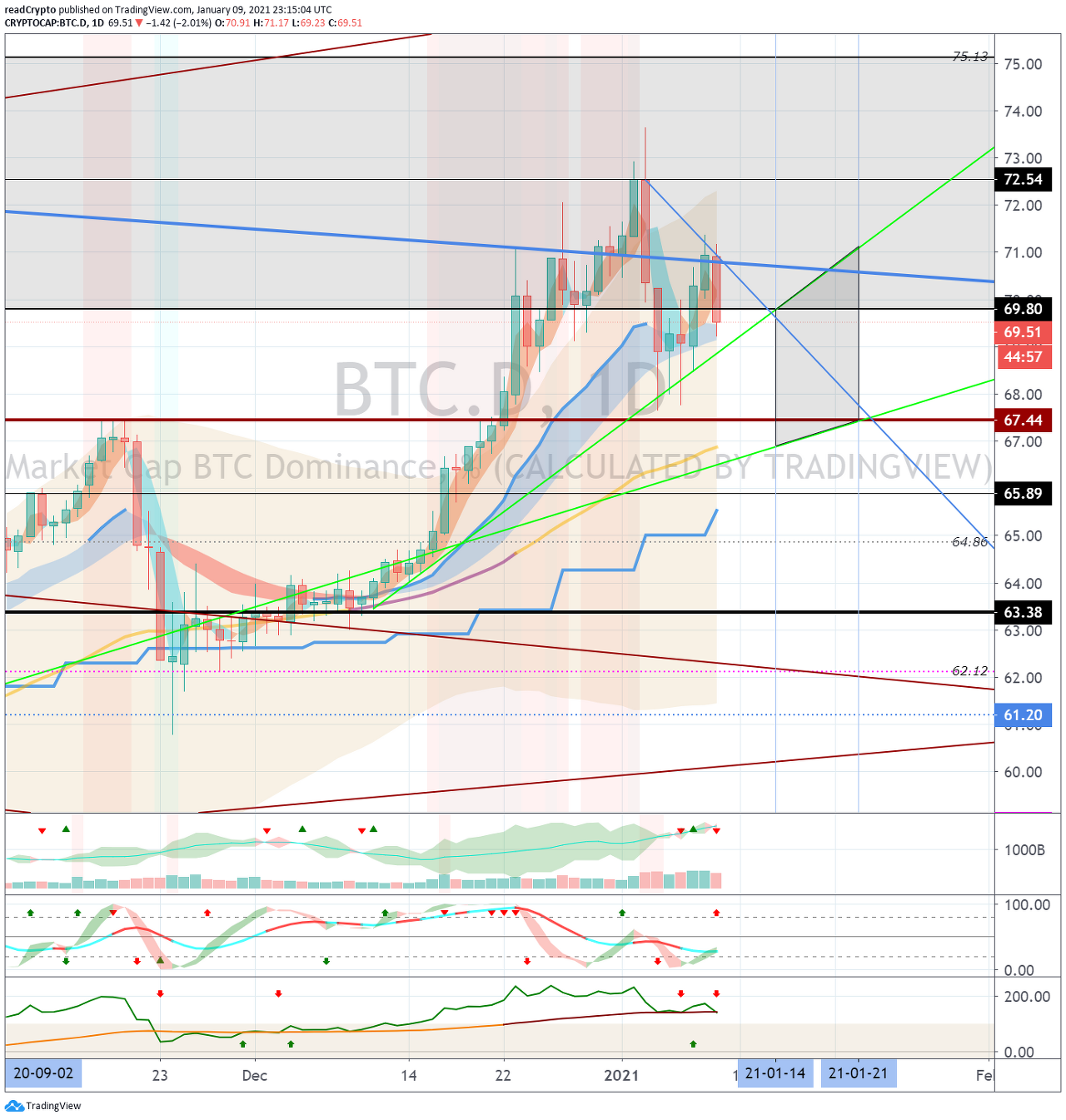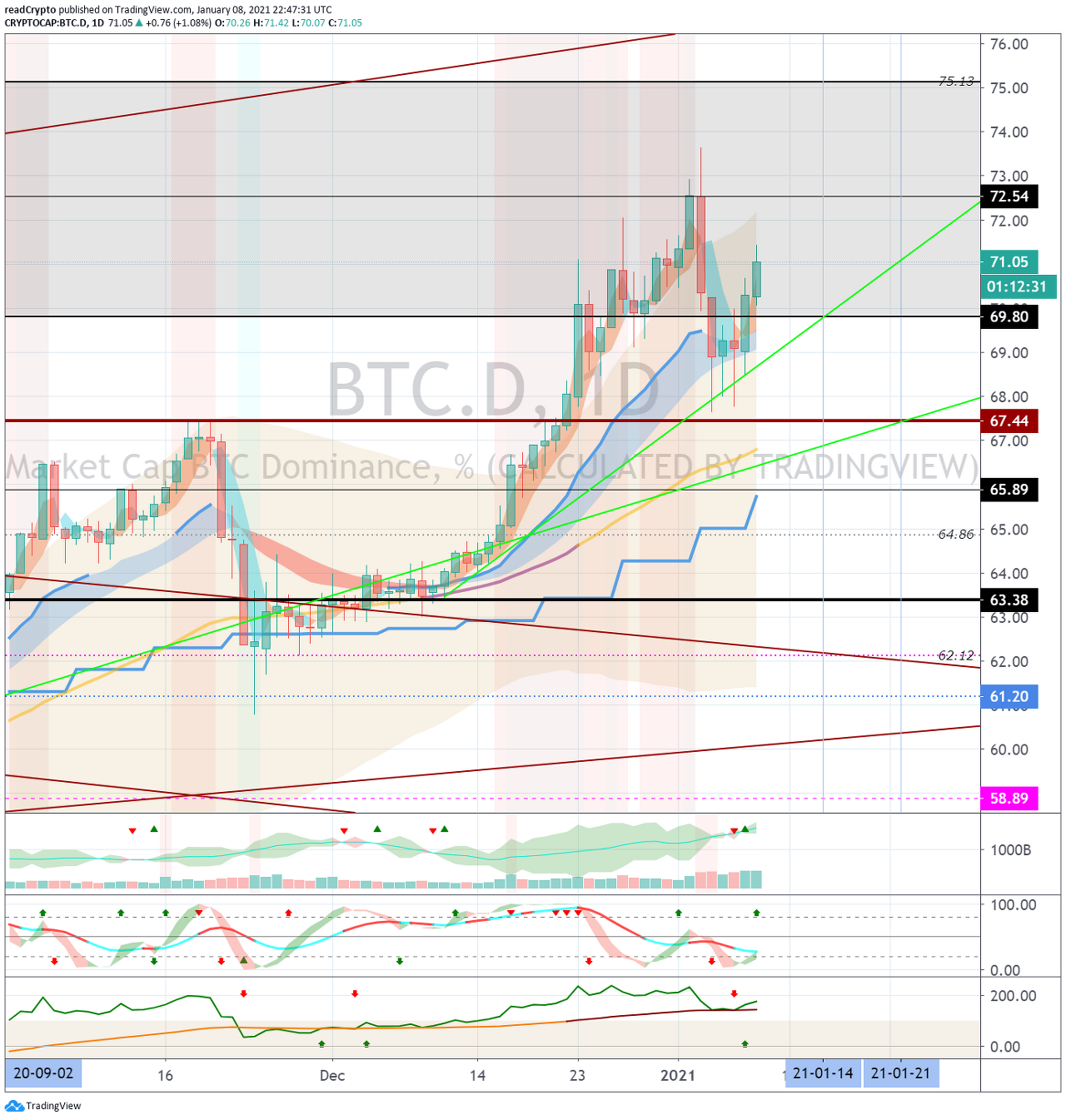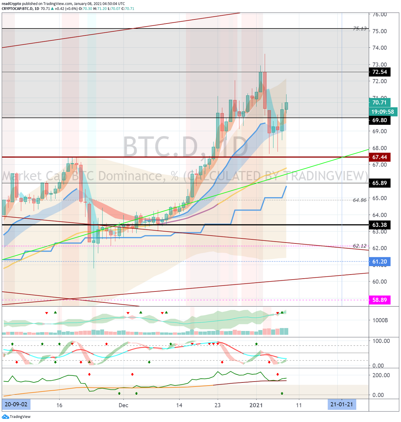 상승 추세선 (1) 이하로 하락하지 못한다면, 결국 BTC 도미넌스는 상승하게 될 겁니다.