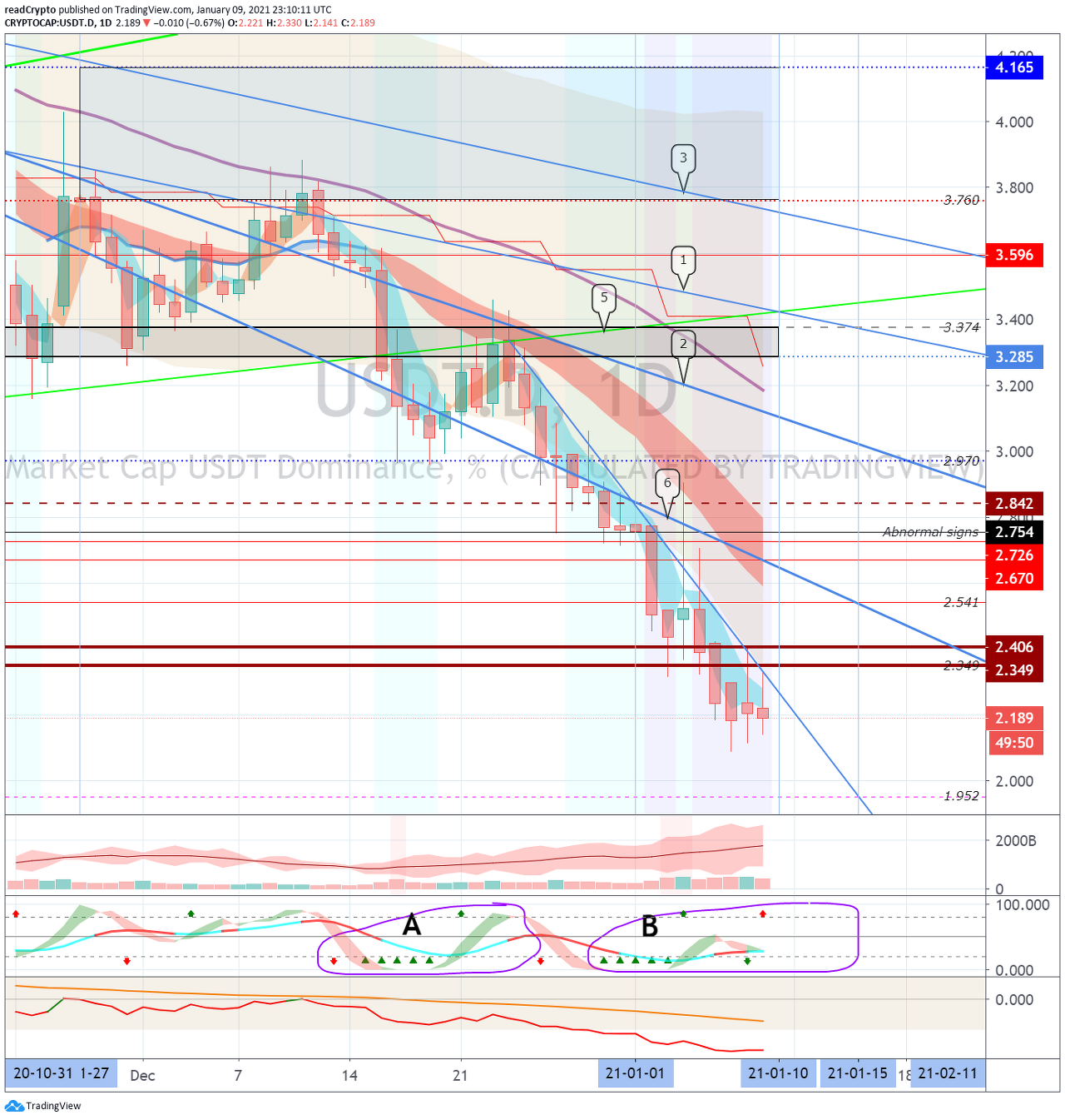 BTC 도미넌스와 USDT 도미넌스가 동시에 하락할 수 있는지 확인해야 합니다.