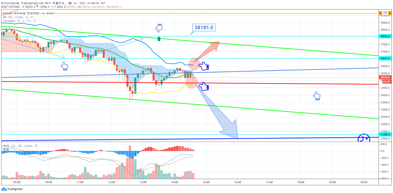 2. 진입 지점 : 37070.5 지점을 하향 돌파시