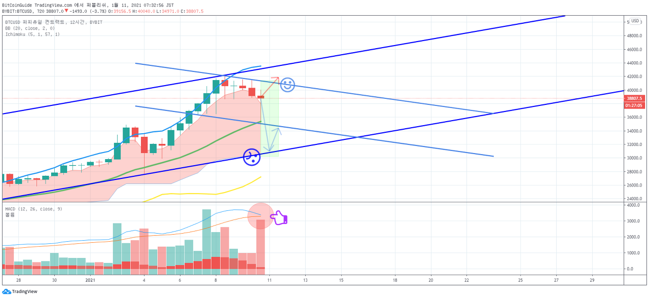 목표 지점 : 1차 38432.7 지점 이하, 2차 37442.9 지점 이하