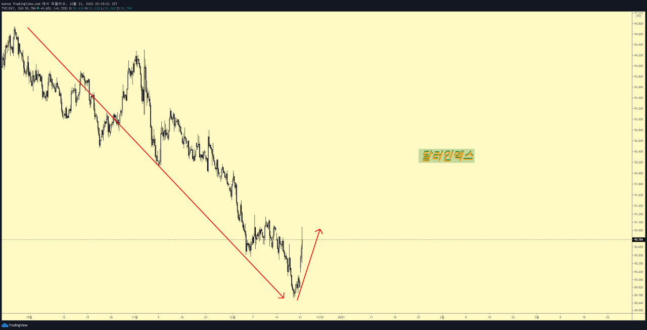 가격 차트에 그려진 화살표대로 움직임이 나올 수 있는지 지켜봐야 합니다.