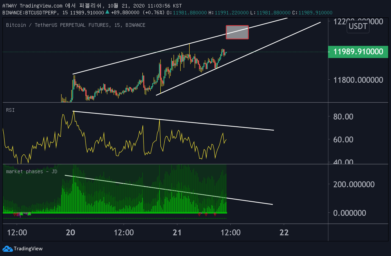 돌파 지점인 12123.46 지점을 상향 돌파하고, 알트코인들이 상승할 수 있는 시간을 주는지 확인해야 합니다.