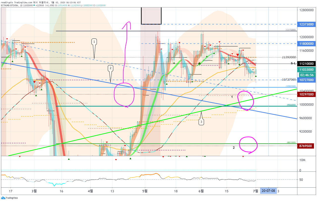 그래서 손절을 짧게잡고 10K를 넘지 못하는선에서 한번의 숏물량을 정리할 상승을 보여줄것 같습니다.