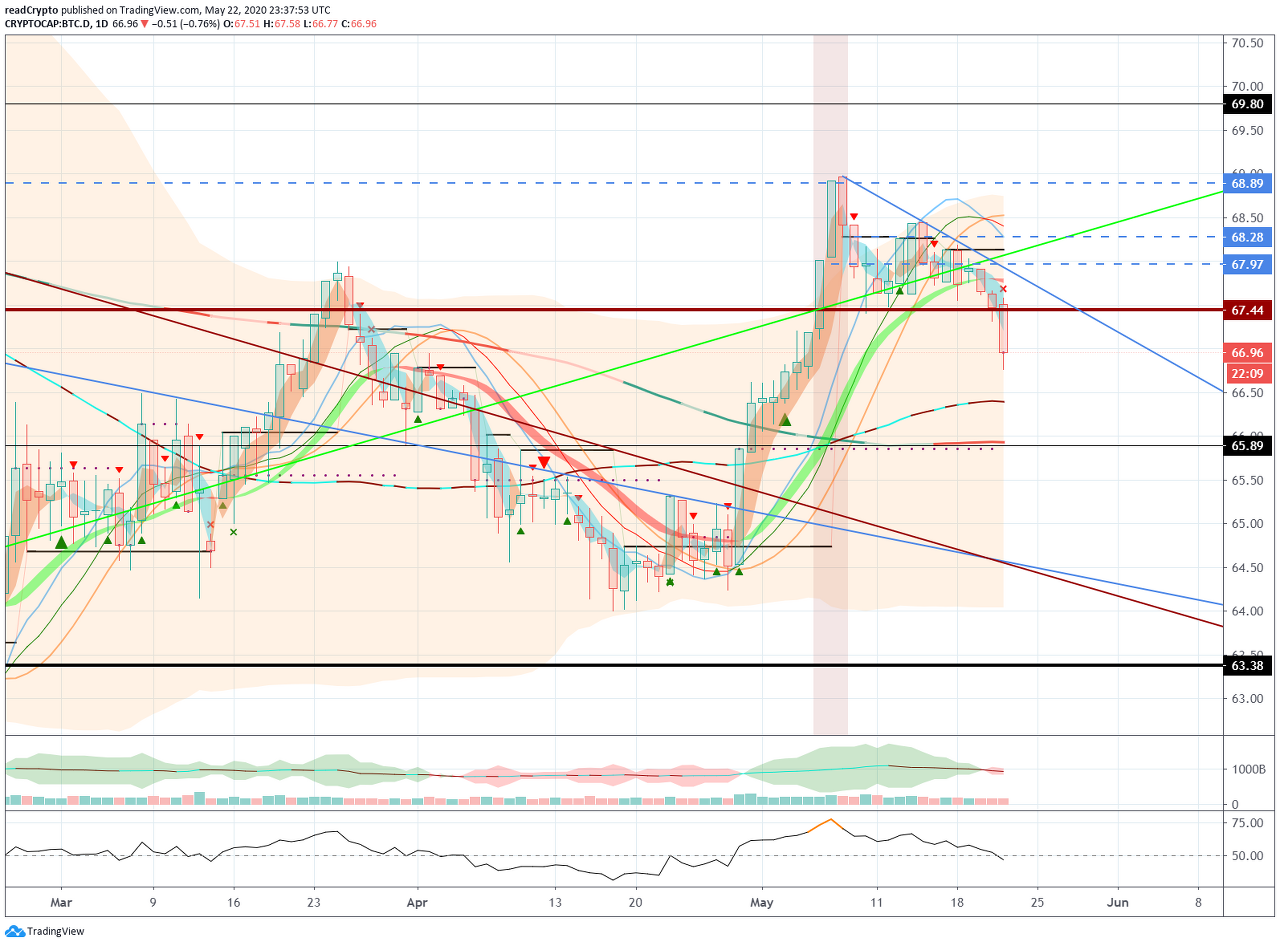 | 비트코인 (BTC) - 5월 25일 (자연스러운 하락 추세 형성 시작) (0) | 2020.05.26 |