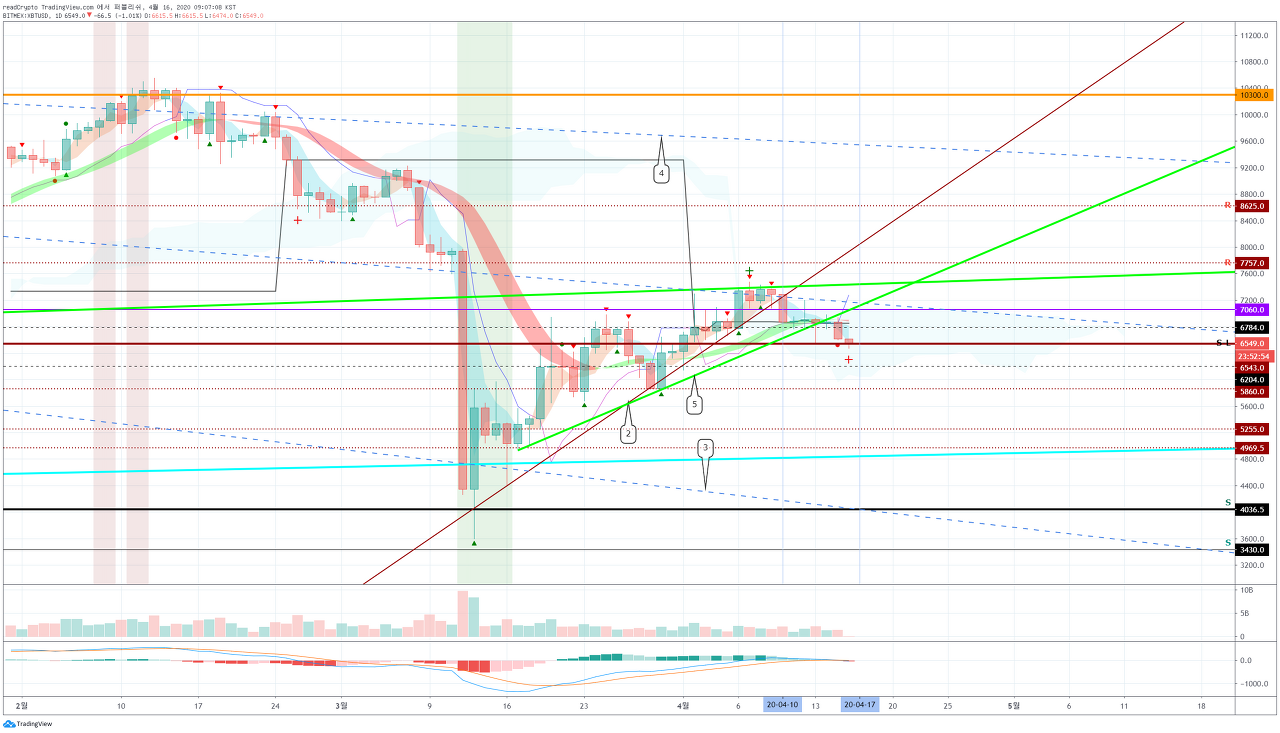 4월 10일 ~ 4월 17일 (9일~18일) 경까지 7K대에서 가장 중요한 기간이 될 것으로 예상되고, 횡보할 것으로 예상됩니다.