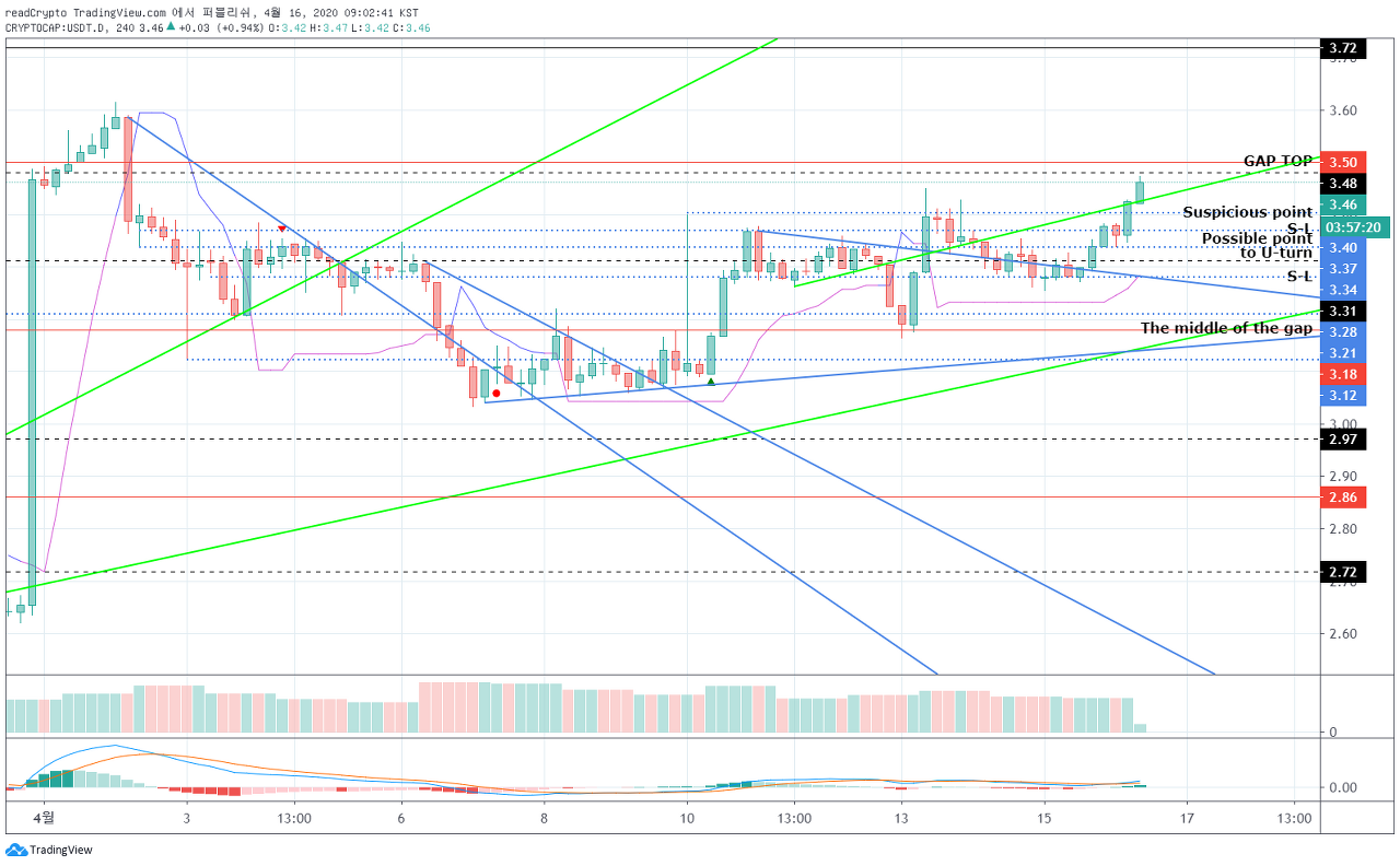 GAP으로 상승할 만큼 USDT의 신규 발행이 되었다고 생각하는데, "GAP TOP" 지점을 향해서 상승하고 있습니다.