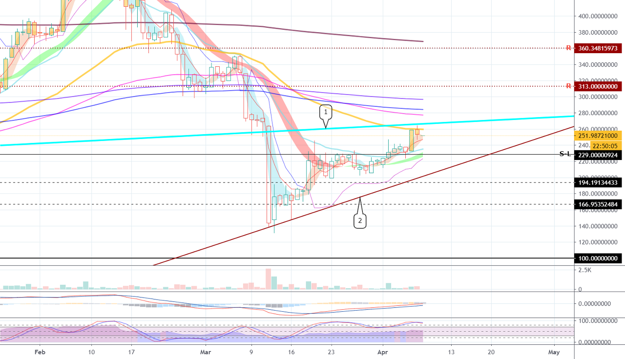 표시된EMA는 1D 차트의EMA입니다. IchimokuCloud의 Land를 새로 추가하였습니다. 1D 차트의 Land 가 표시되도록 하였습니다.