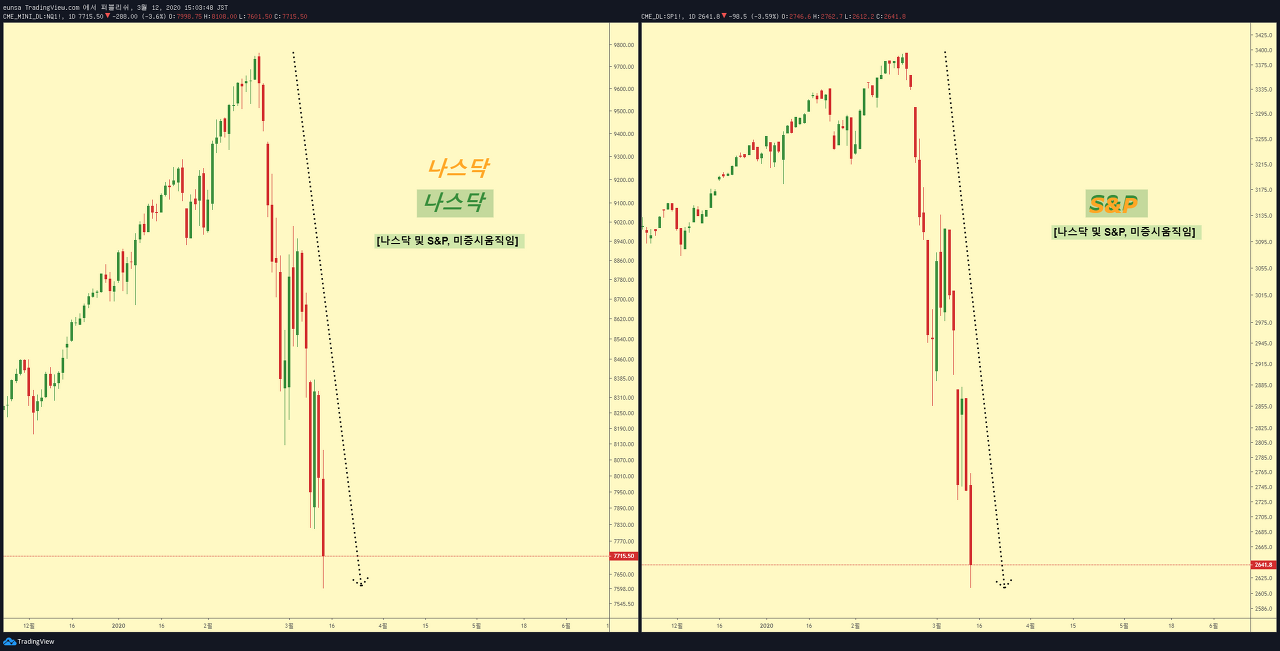 현재 공포가 이성을 지배하여, 패닉이 지배하고 있는것으로 보여집니다 슬슬 시장참여자들이, 이또한 지나갈 헤프닝임을 깨닫게 된다면 골이 깊었던 만큼, 회복세도 강하게 나올 것이라 보여집니다