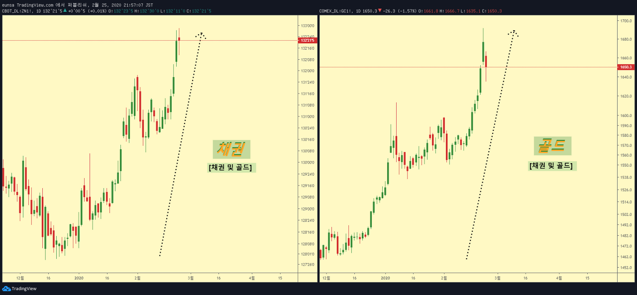 - 우한 코로나 사태로 달러강세장 진행 중 => 달러를 제외한 안전자산/증시 모든 시장에서 돈이 빠져나가는 중이며 미국 다우는 130년 만에 최대 하락폭을 보여줌
