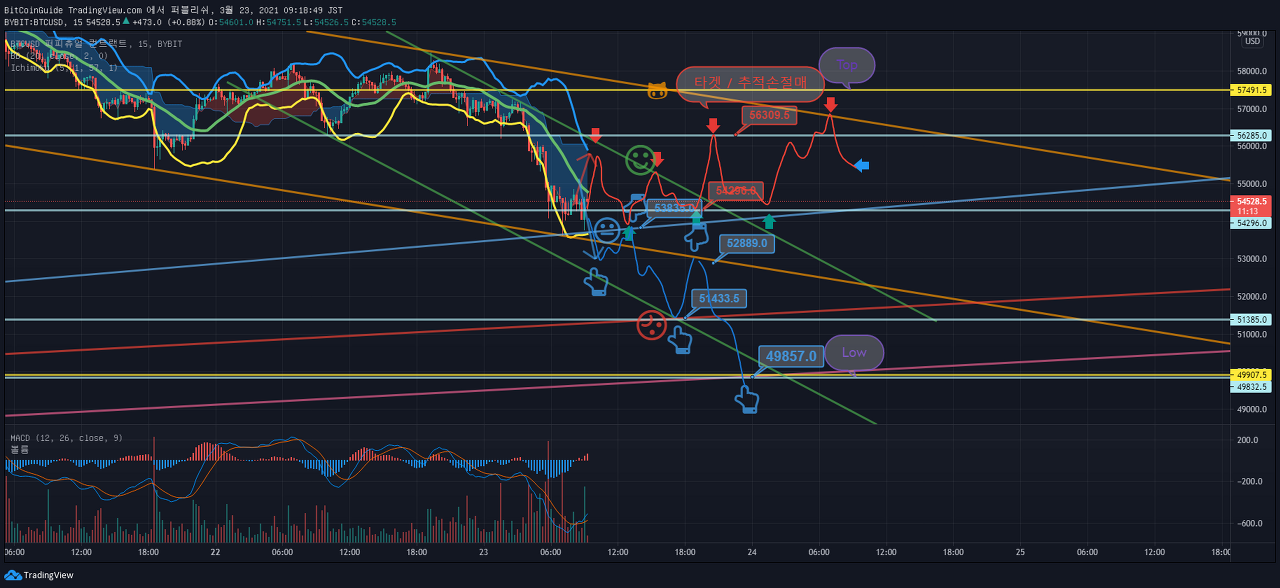 54087.67 지점에서 하락한다면, 단기 Stop Loss가 필요합니다.