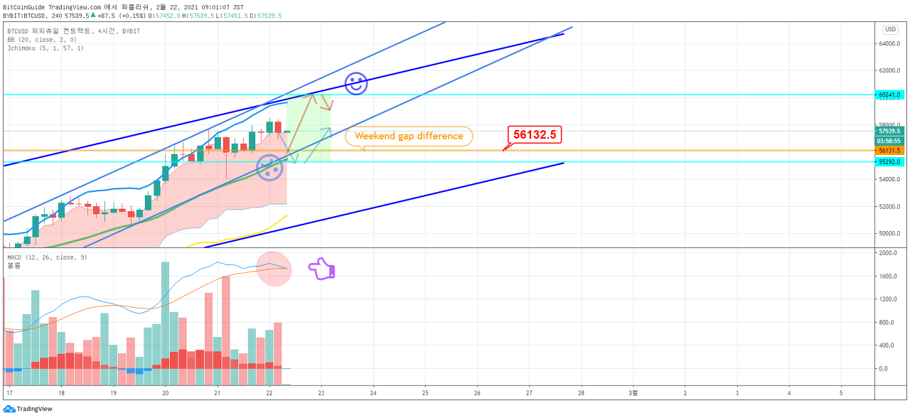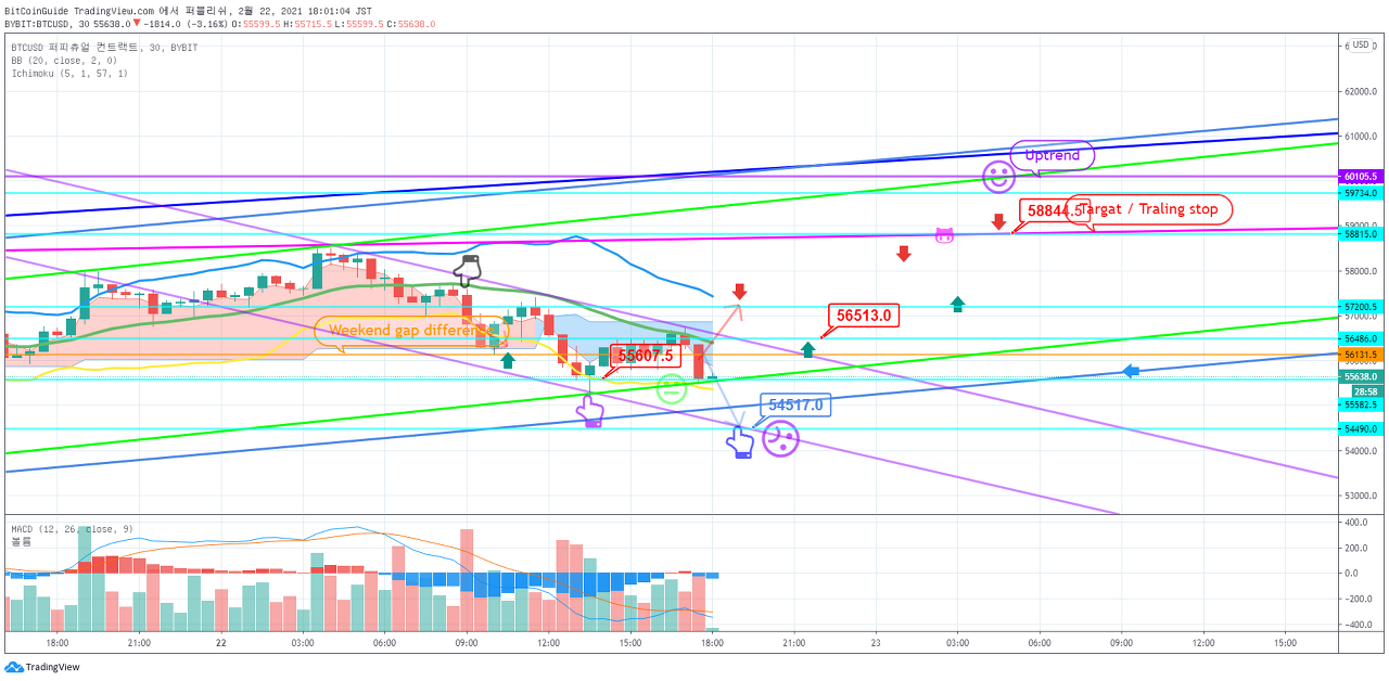 2월 22일 비트코인 Bybit 차트분석입니다. by BitCoinGuide on TradingView.com