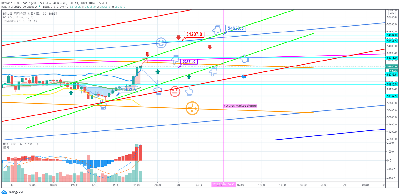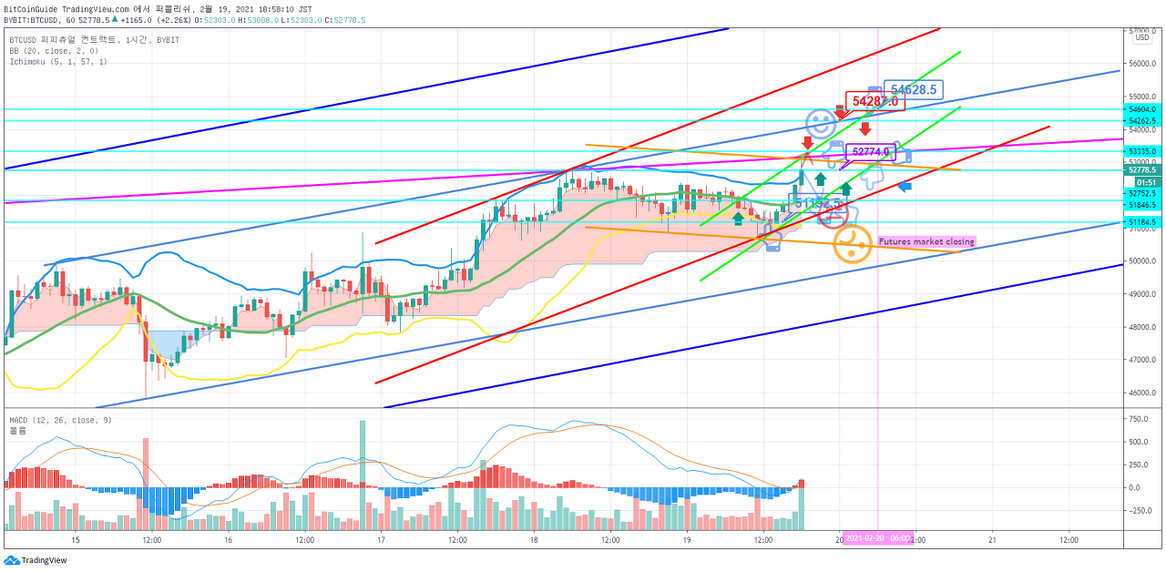 2. 진입 지점 : 52330.0 지점을 하향 돌파시 목표 지점 : 48323.0 지점 이하 Stop Loss : 53666.0 지점 ---------------------------------------------- 저의 글을 계속 보셨다면, 진입 지점, 목표 지점, Stop Loss 가 필요없을 것이라고 생각합니다. 움직임이 어디서 시작되는지 이해하셨을 거라 생각합니다.