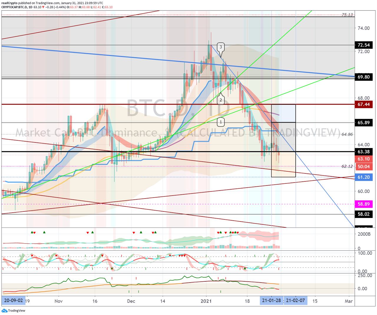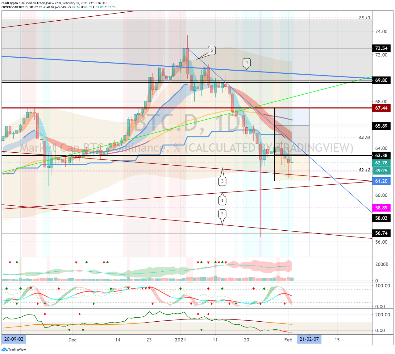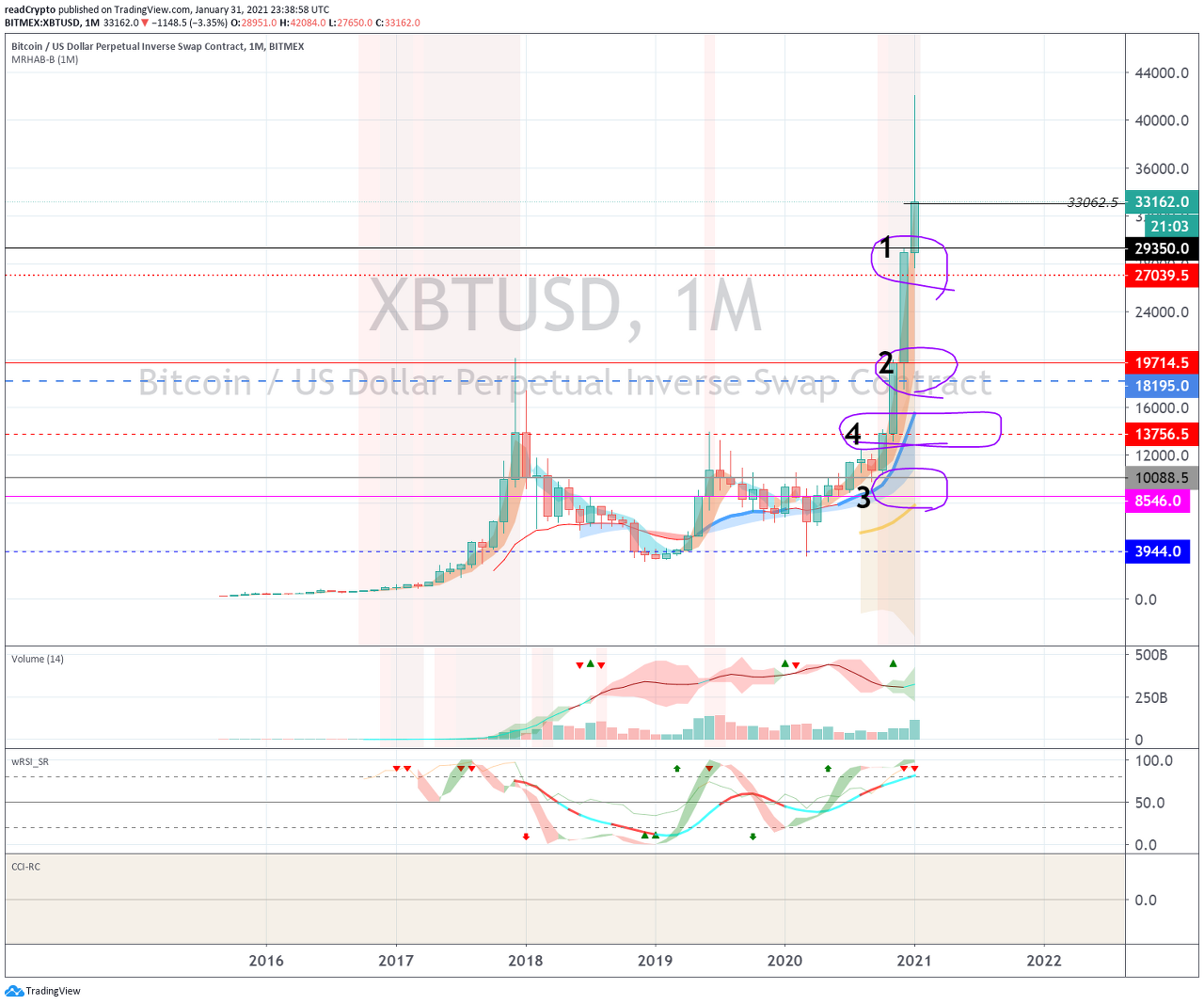 2월 5일경 (2월 4일-6일)의 변동성으로 35660.0-39915.0 구간에서 벗어나는 움직임이 나오는지 지켜봐야 합니다. 특히, 37790.0 지점 이상 상승하여 지지를 받을 수 있는지 지켜봐야 합니다. 현재 변동성 기간에 속해 있으므로, 신중한 트레이딩이 필요합니다.
