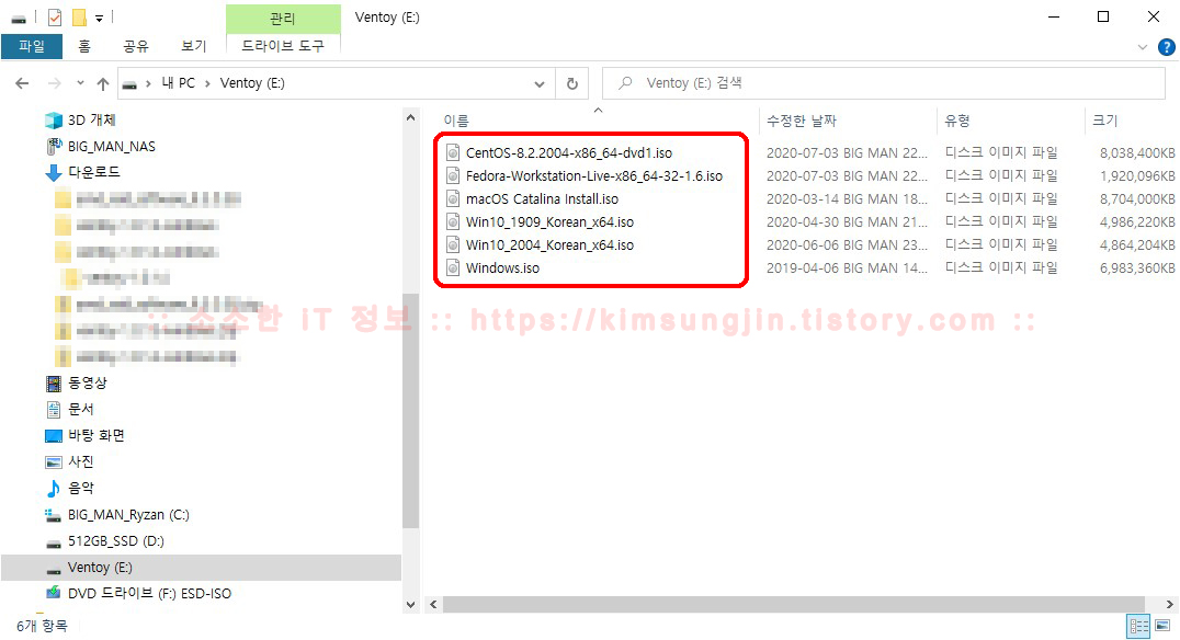2.사용이 무척 편리합니다. Ventoy는 한번 작성된 후 별다른 조작 없이 단순히 ISO 파일을 복사해 넣는 것만으로 운영체제 설치가 가능합니다.Rufus처럼 복잡한 과정이 없다고 보시면 됩니다.