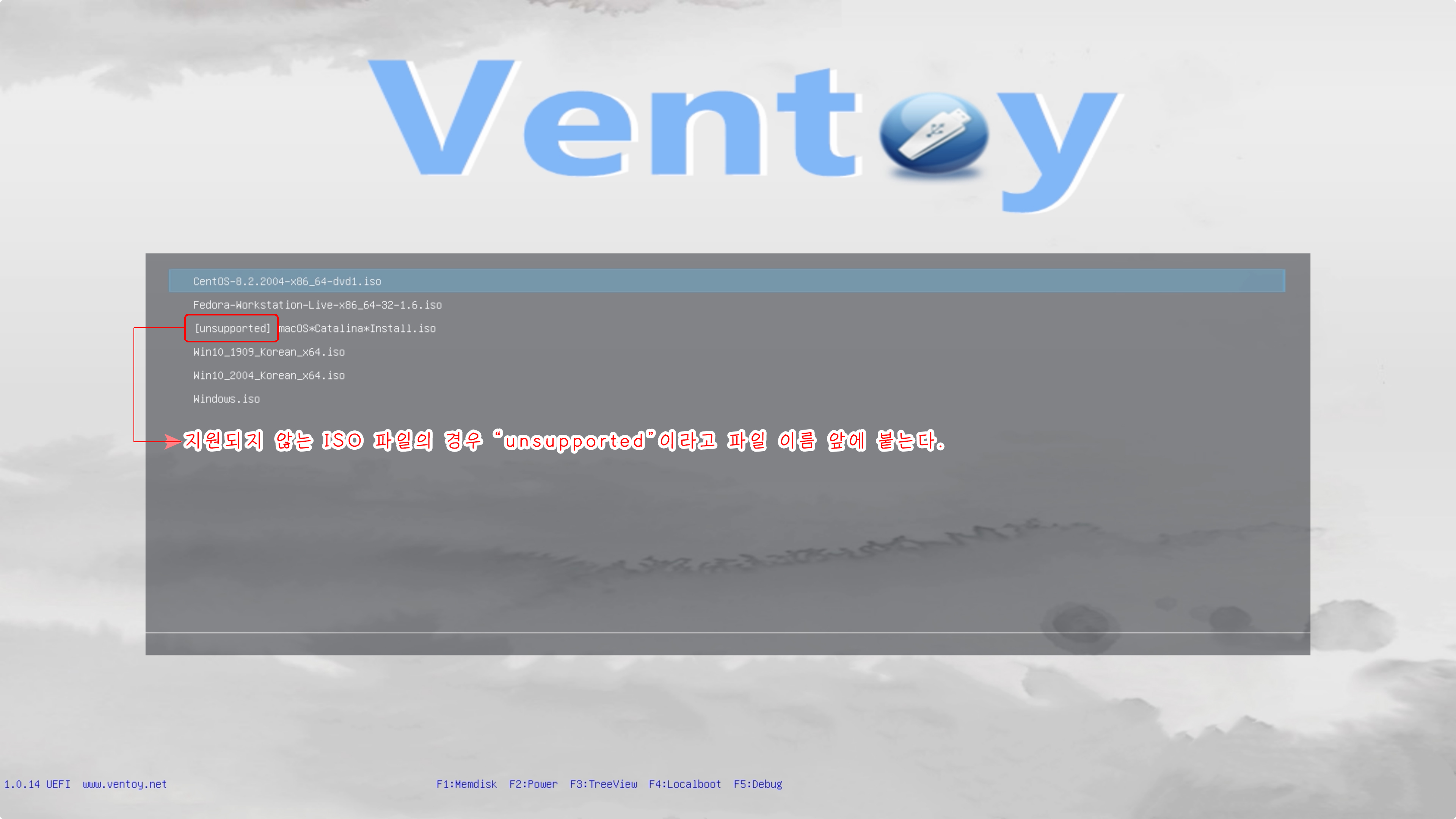 ❶1.0.14- 현재 Ventoy의 버전 정보를 제공하고 있습니다.