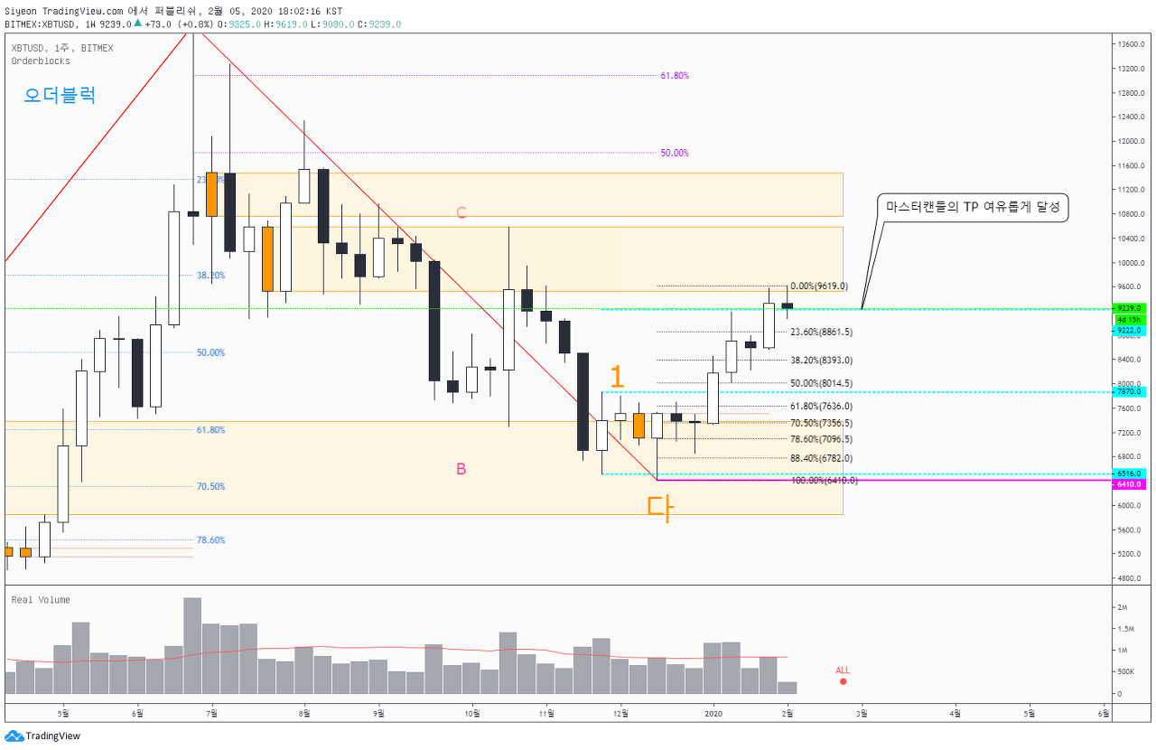 주봉 관점에서는 9.5K 이상에 전개된 오더블럭의 돌파양상이 어떠냐에 따라서 향후 큰 추세가 바뀔 것으로 봅니다.